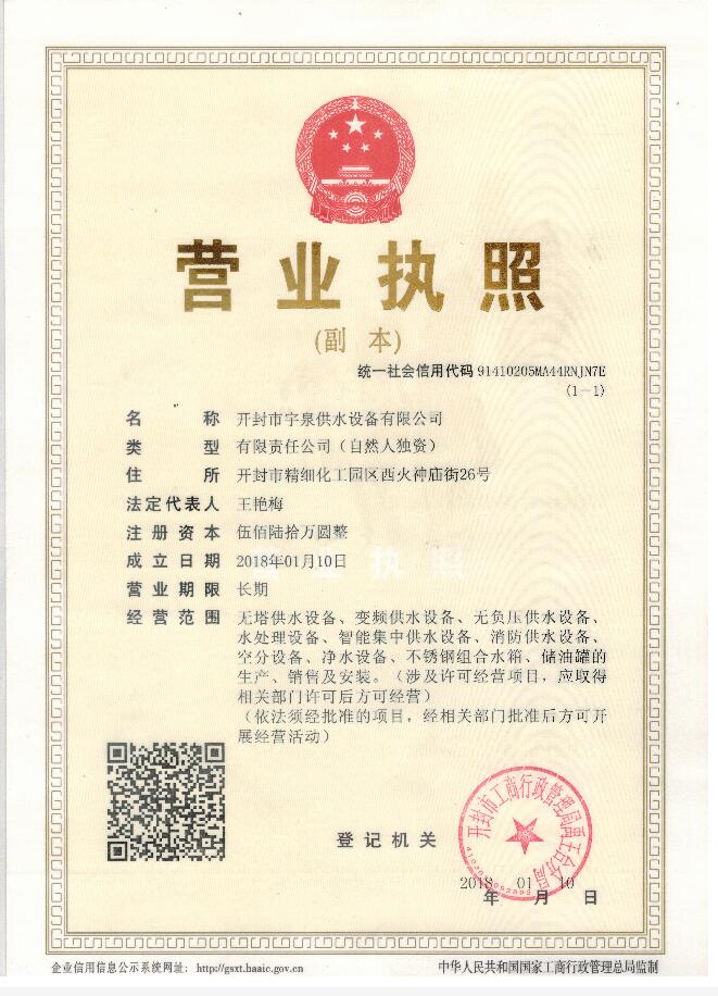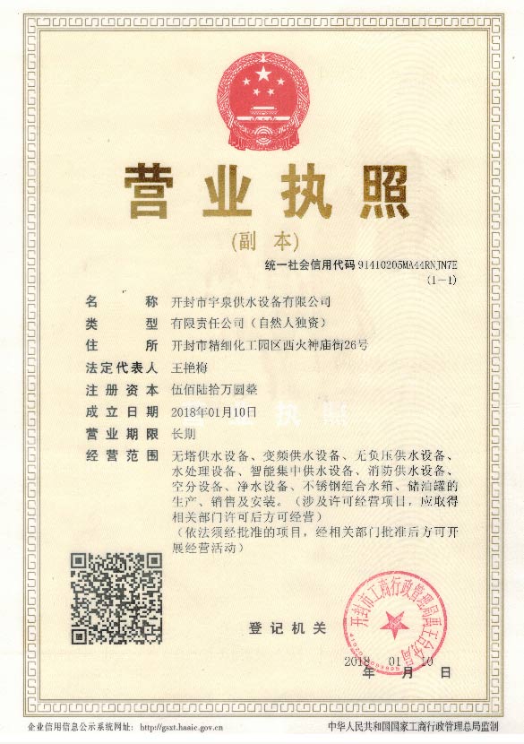 版權(quán)所有:開(kāi)封市宇泉供水設(shè)備有限公司 豫ICP備19046338號(hào)-1 營(yíng)業(yè)執(zhí)照公示
